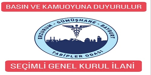Erzurum--Bayburt-Gümüşhane illeri Tabip Odasınca“6023 Sayılı Türk Tabipler Birliği Kanununun 14. Maddesi gereğince Yönetim Kurulumuzun almış olduğu 08.03.2026 tarih ve 376 sayılı kararına binaen seçimli genel kurulumuz 25-26 Nisan 2026 saatDEVAMINI OKU{{title:words:5}}DEVAMINI OKU{{title:words:5}}